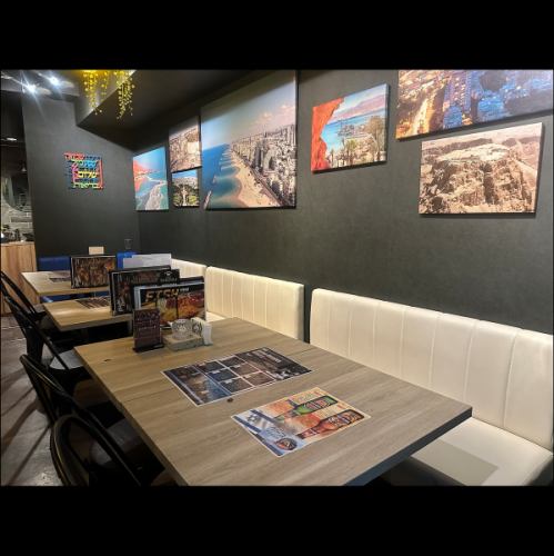 イスラエルの雰囲気をそのままに。国の美しい風景の写真を掲示しております!異国情緒漂う雰囲気と、イスラエル料理、お酒とシーシャを満喫ください。仙台にはなかなかないような、シックに緑を取り入れた落ち着いた店内です。会社のご宴会にも、プライベートな飲み会にもご利用ください。
