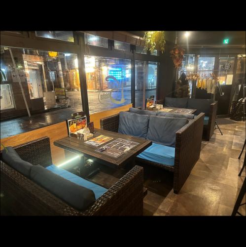 ゆったりくつろげるソファ席はテーブルを囲んで広々とお使いいただけます。女子会などにも人気のお席です。NET予約も対応しておりますので、お気軽にご予約ください!シーシャをシェアして楽しむのにもぴったりのソファ席です。